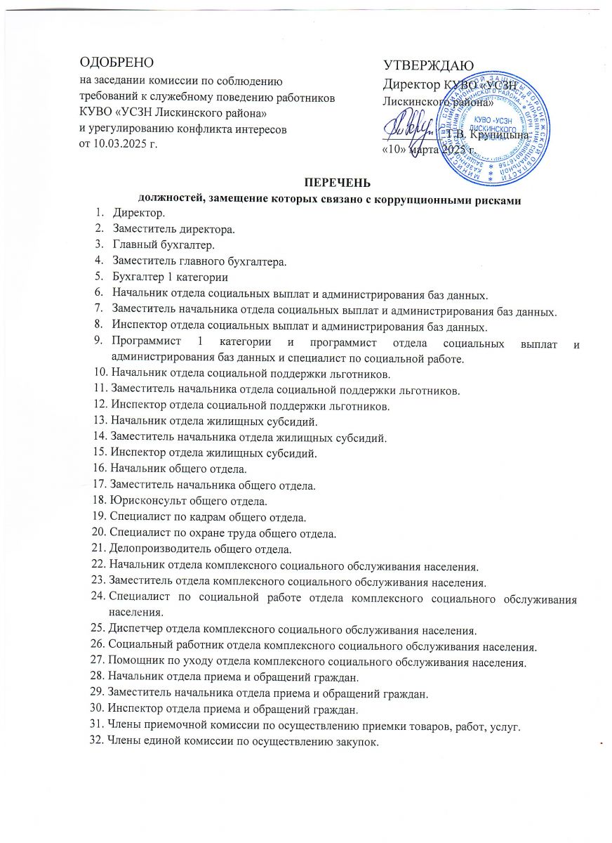 План мероприятий по противодействию коррупции в КУВО "УСЗН Лискинского района" на 2025 год-2028 год